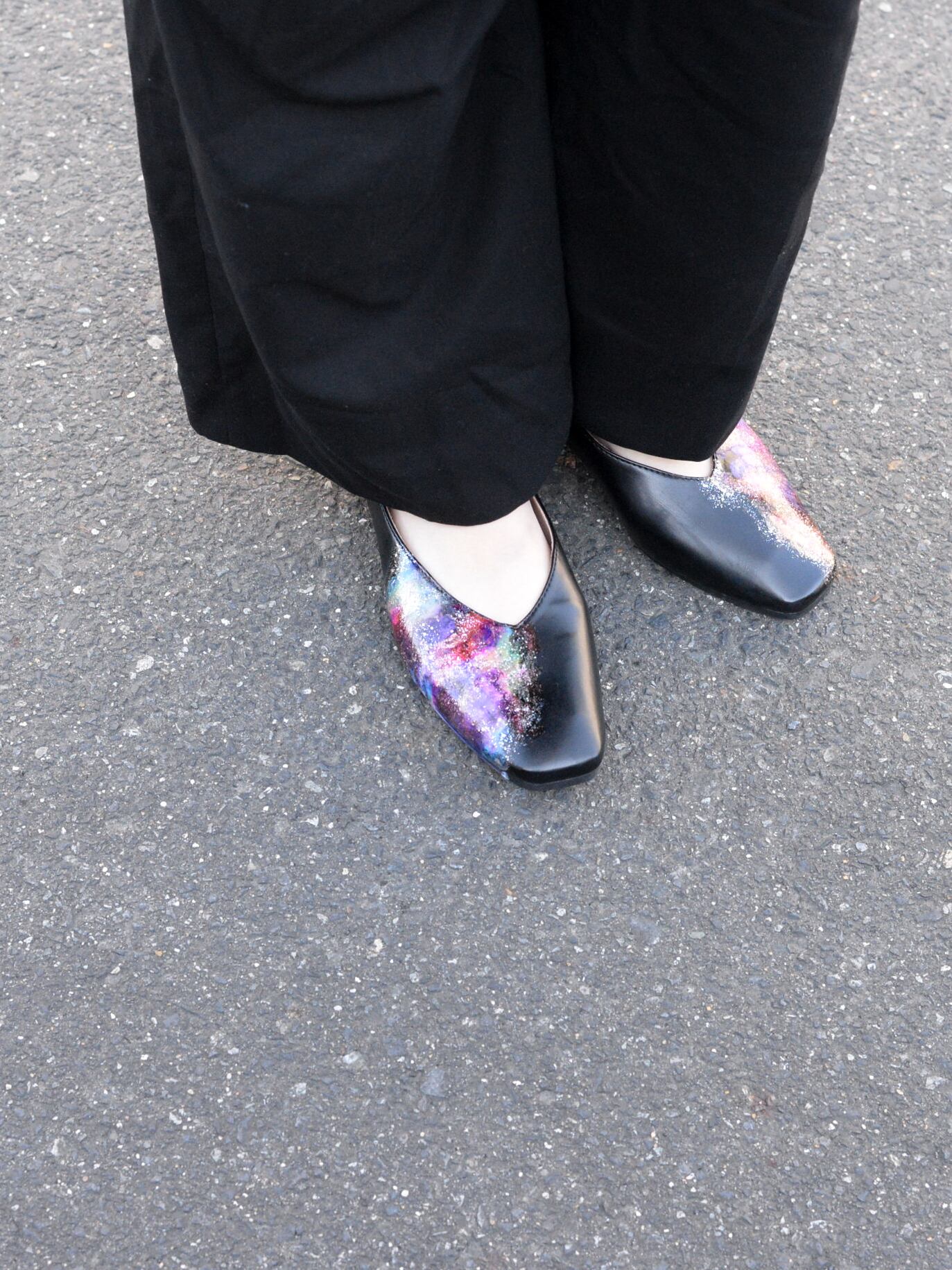 アルコールインクアートレザーフラットシューズ black