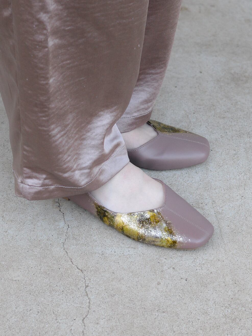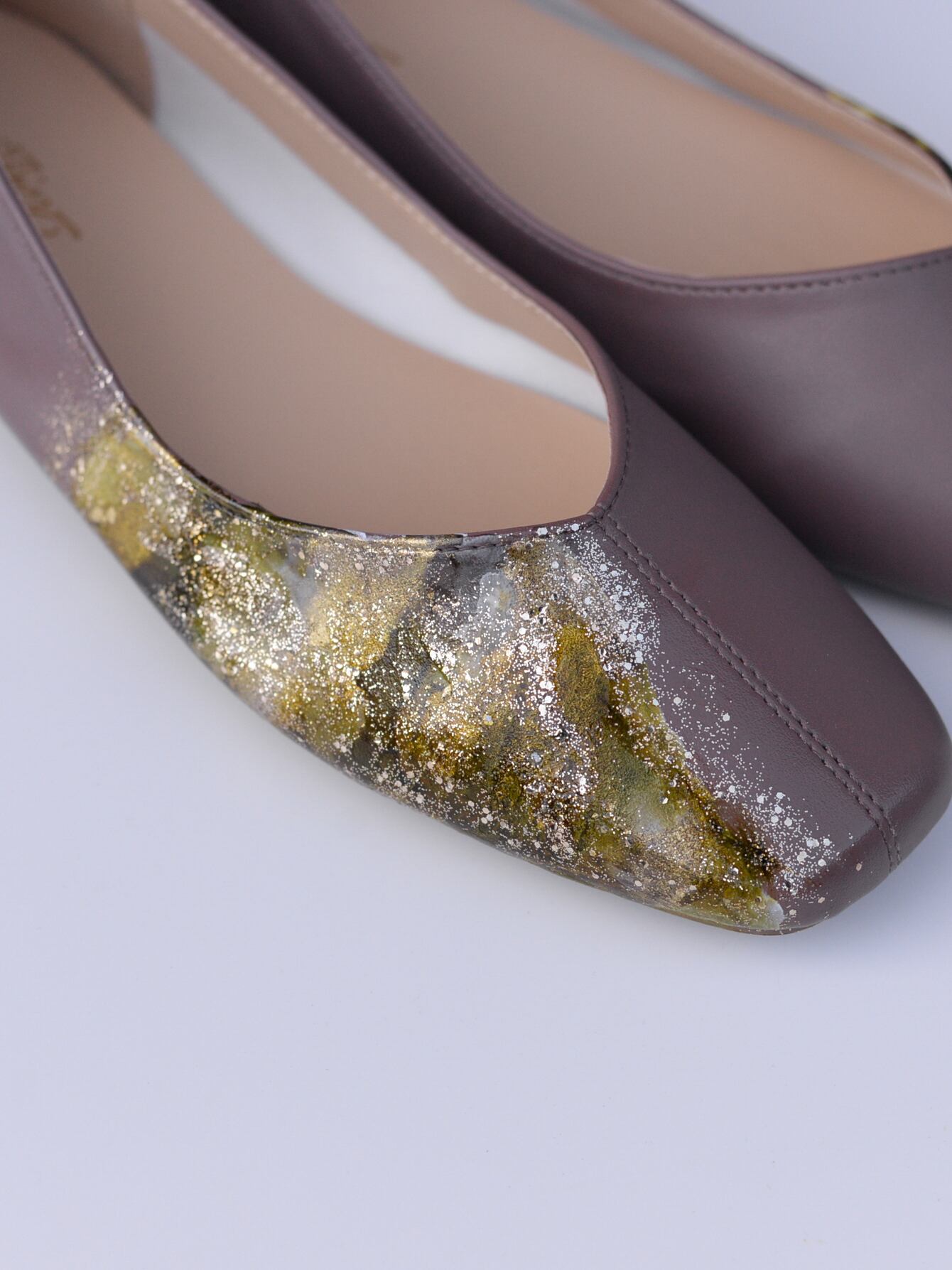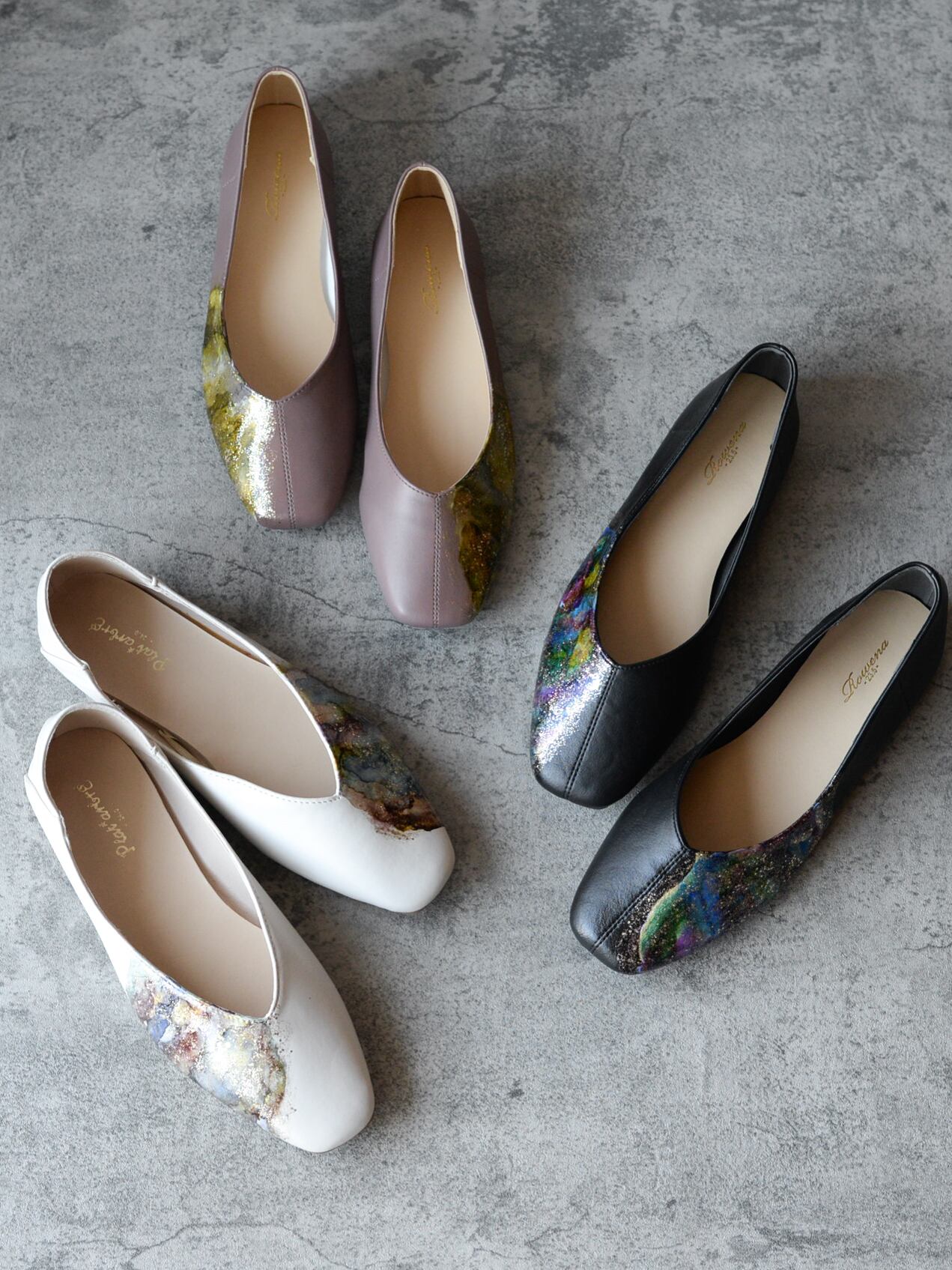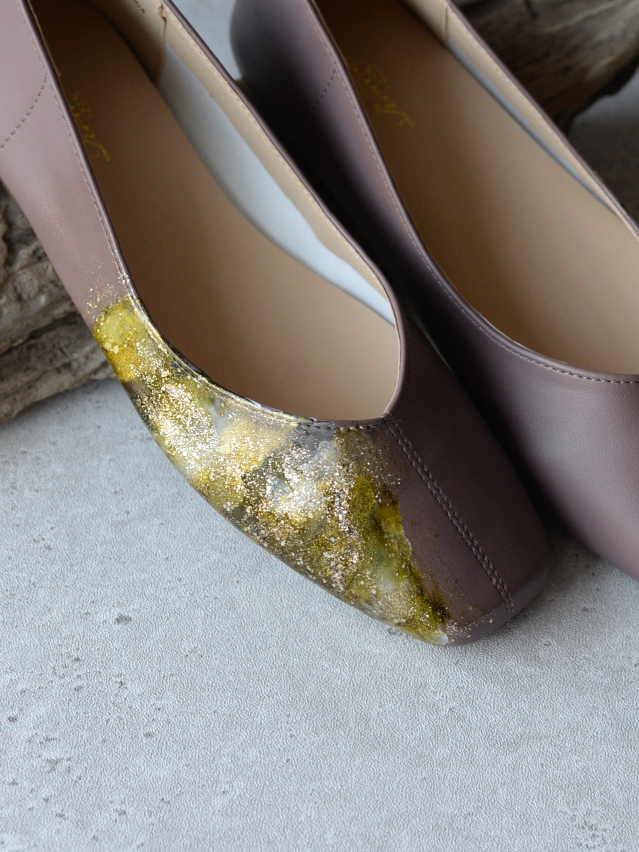 ソフトで柔らかいレザーフラットパンプスにアルコールインクアートで天然石のようなニュアンスデザインを描き込みました。