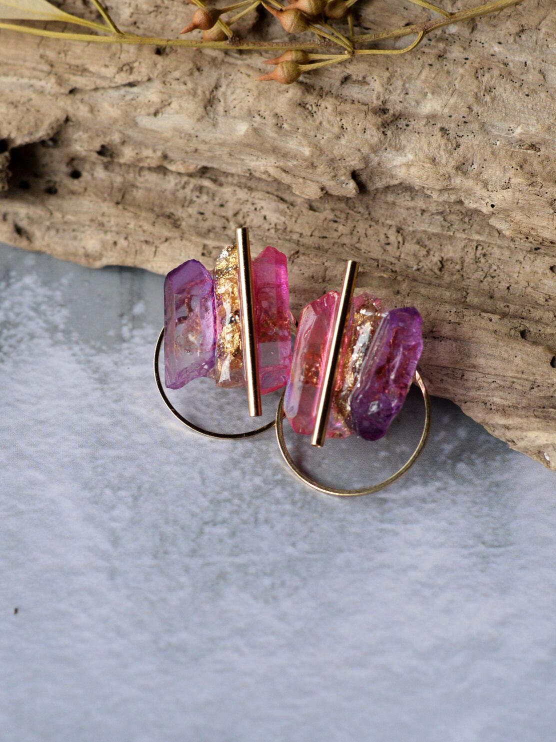 天然石mix hoop "purple×pink"