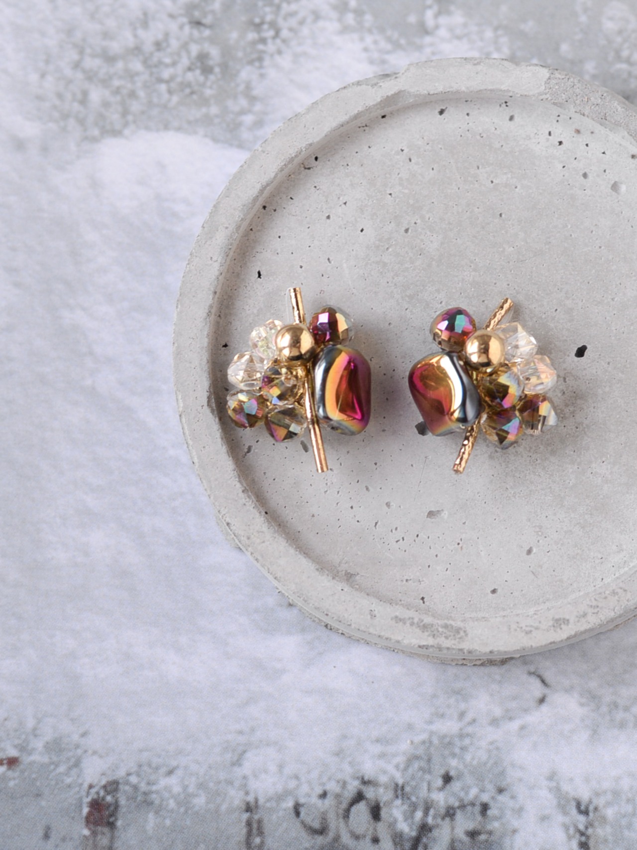 細かいカットが施されたガラスビーズは取り込んだ光を反射、屈折、分散させ光の粒を生み出します。