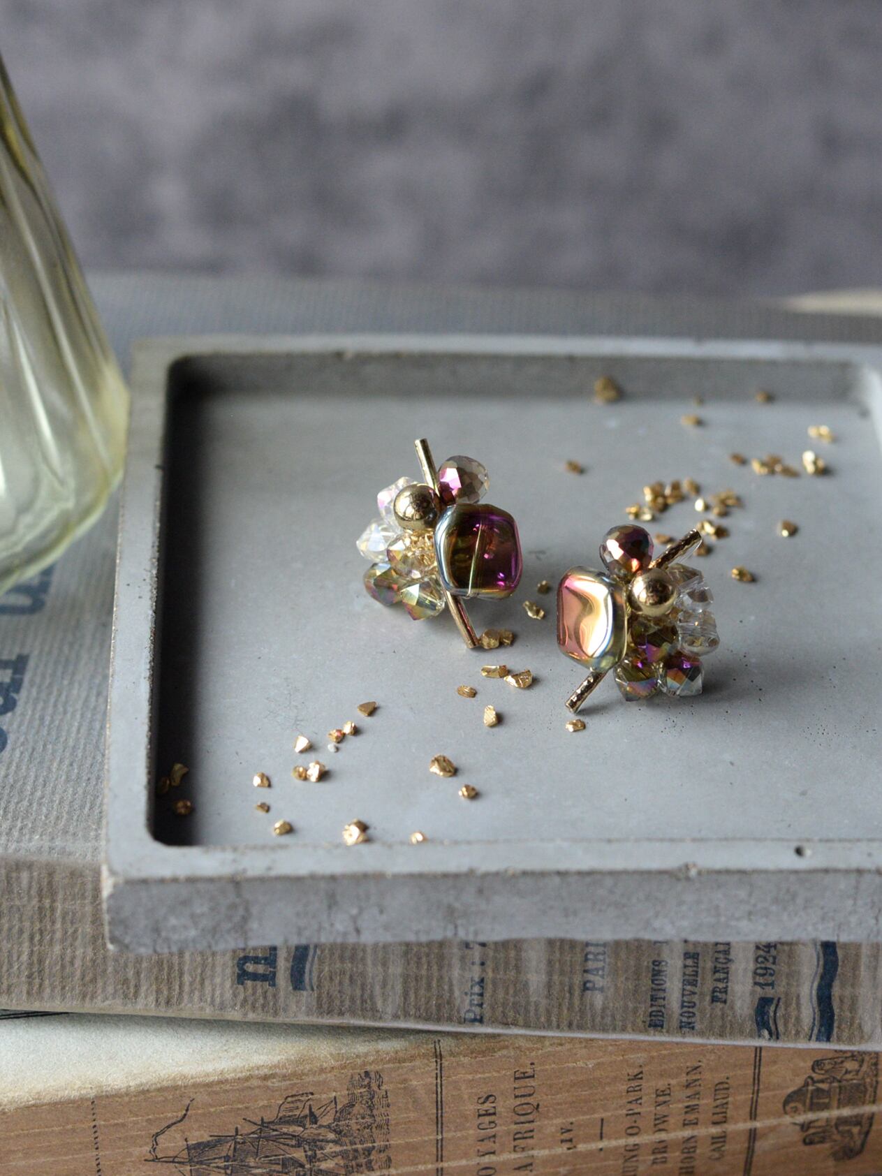 一粒一粒テグスで編み込み、どの角度から見ても綺麗な立体物として仕上げました。