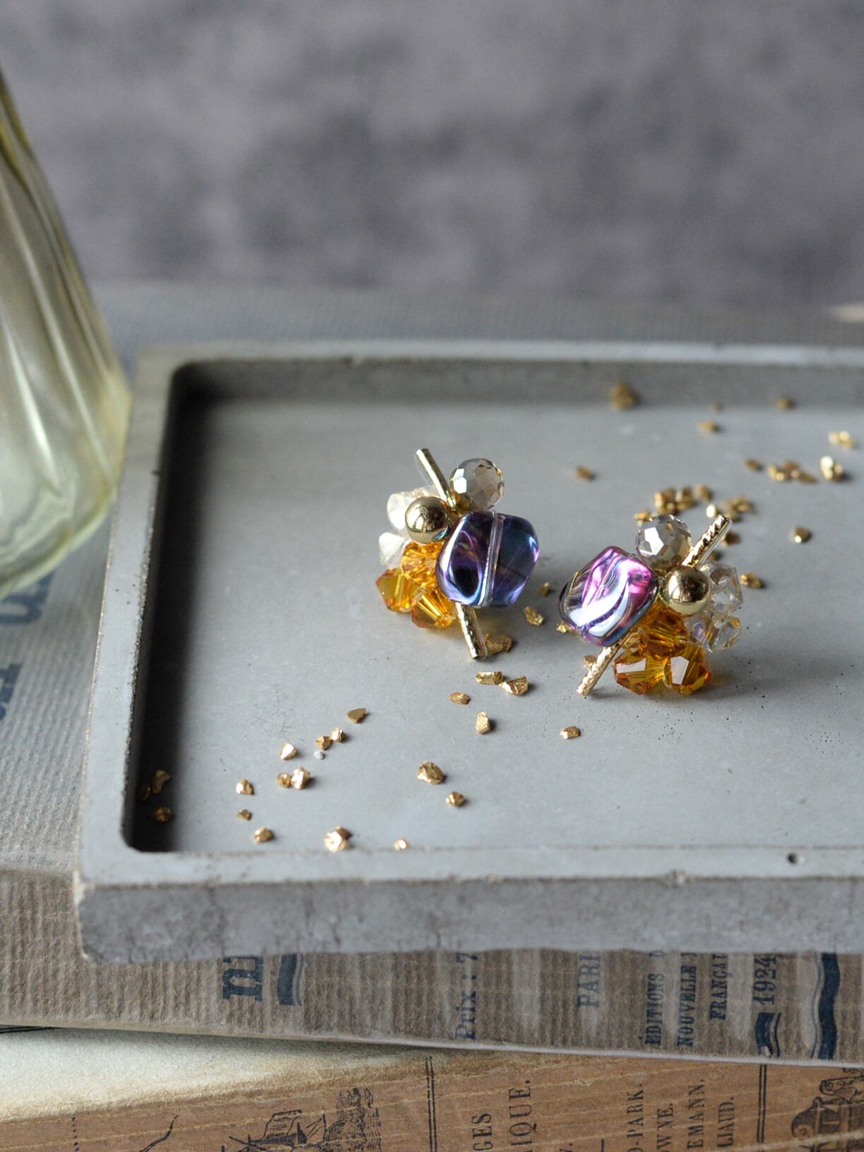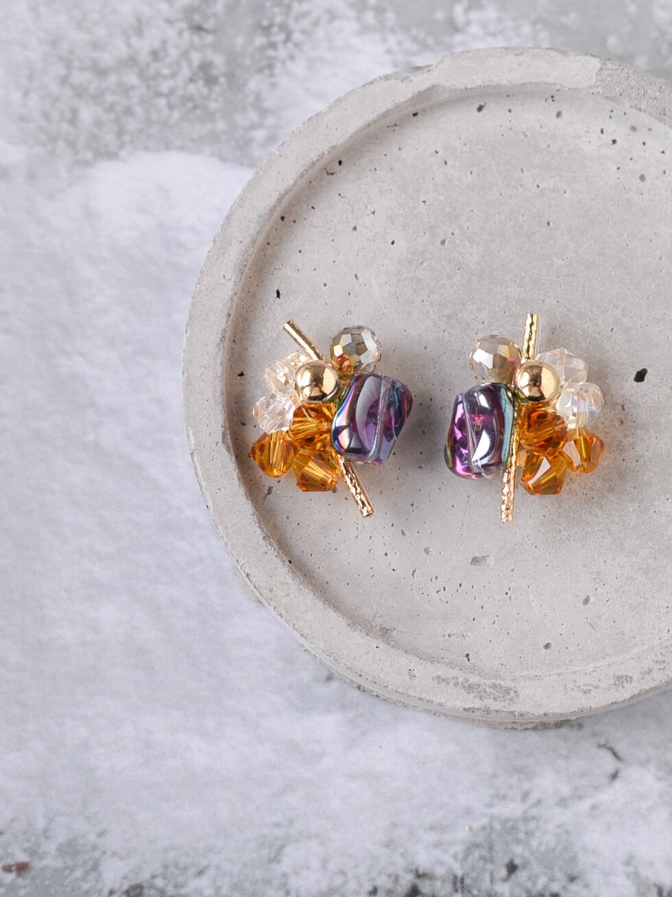 細かいカットが施されたガラスビーズは取り込んだ光を反射、屈折、分散させ光の粒を生み出します。