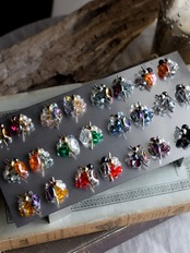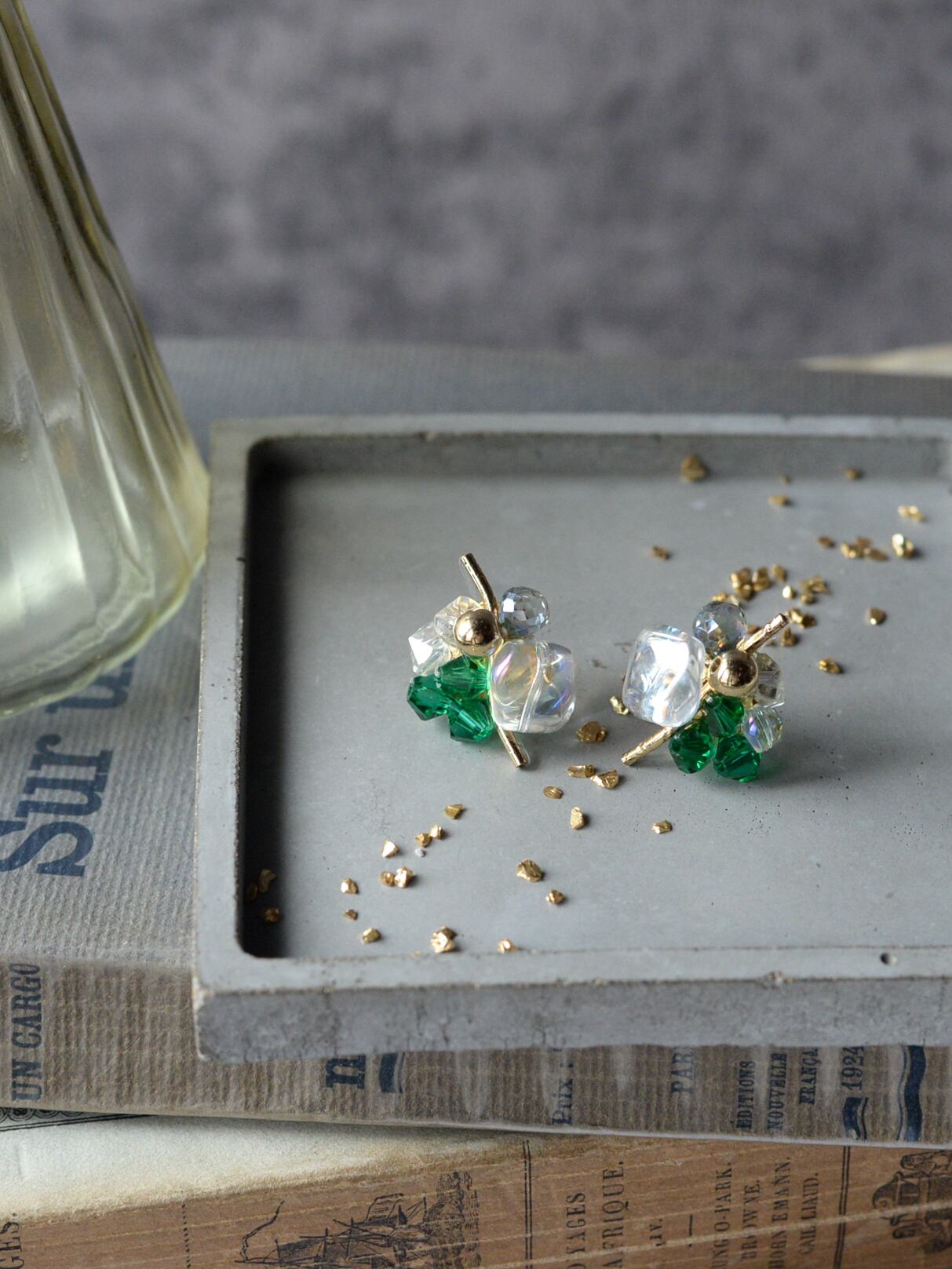 細かいカットが施されたガラスビーズは取り込んだ光を反射、屈折、分散させ光の粒を生み出します。