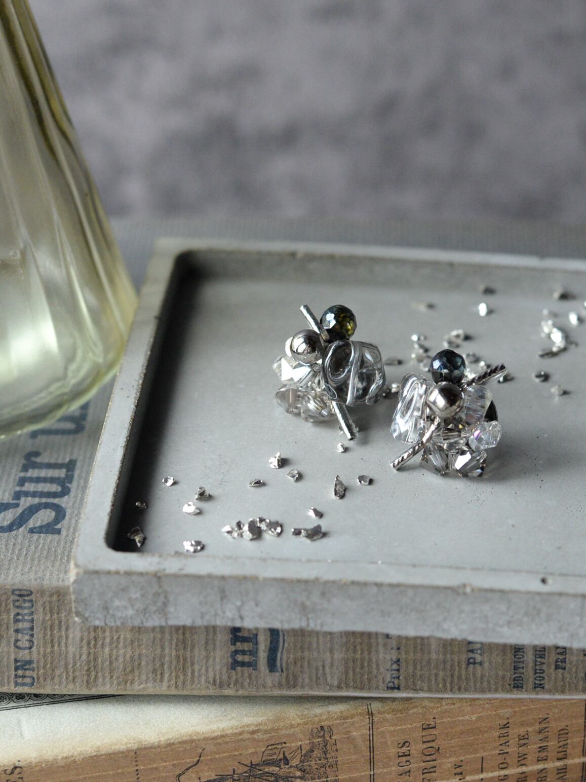 細かいカットが施されたガラスビーズは取り込んだ光を反射、屈折、分散させ光の粒を生み出します。