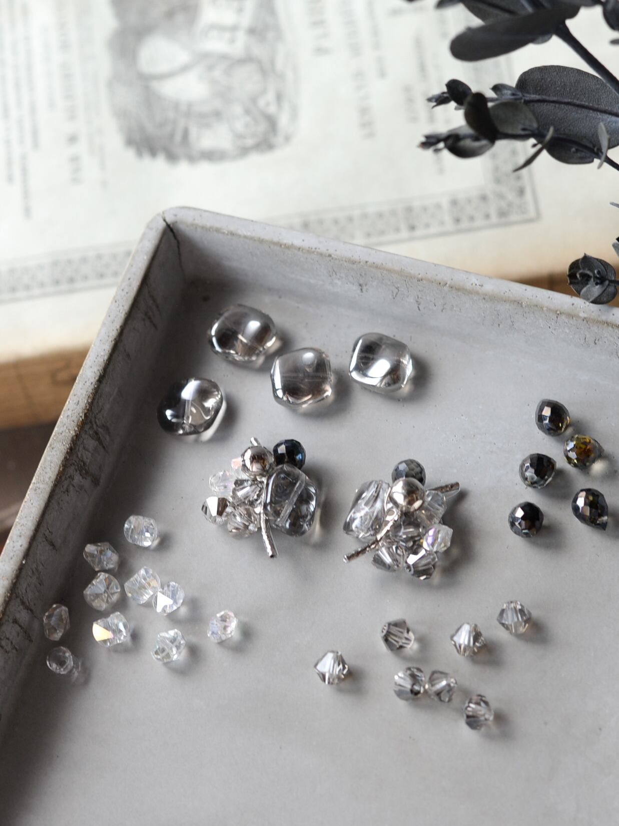 一粒一粒テグスで編み込み、どの角度から見ても綺麗な立体物として仕上げました。