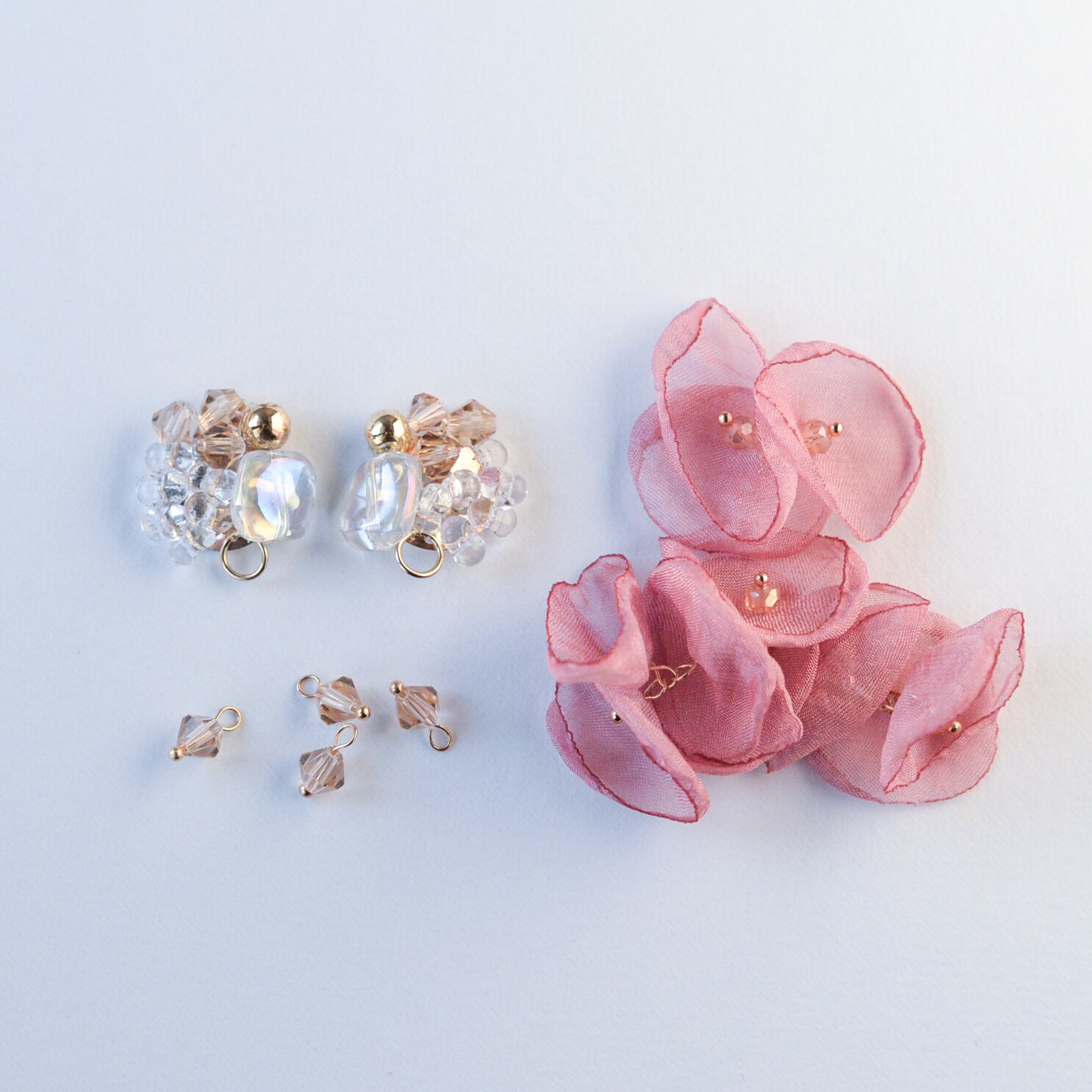 細かいカットが施されたガラスビーズは取り込んだ光を反射、屈折、分散させ光の粒を生み出し、お耳元を華やかに飾ります。
