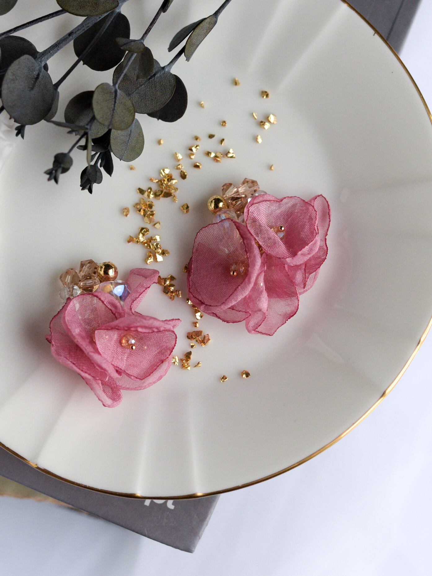 ふわりと軽いオーガンジー素材で大振りな見た目と反し軽量で、