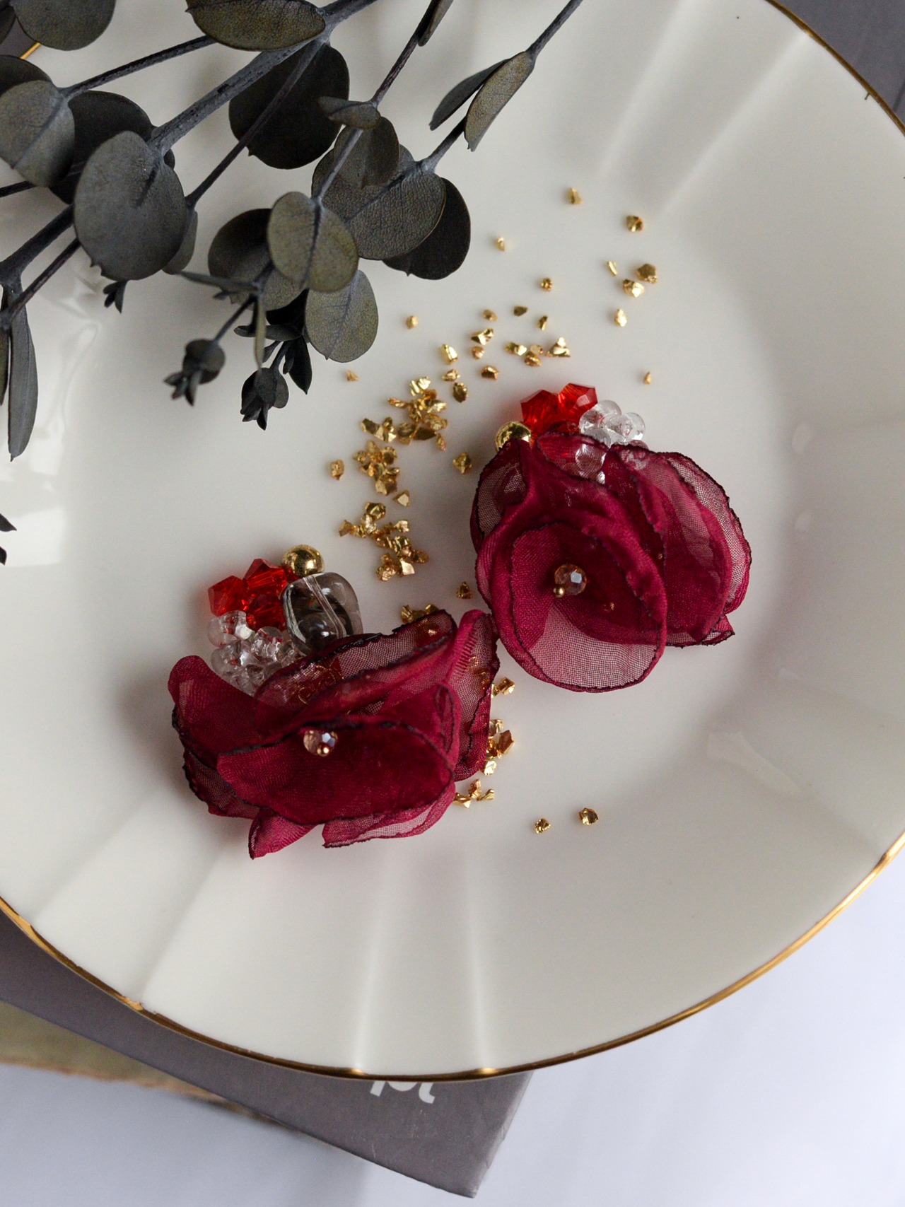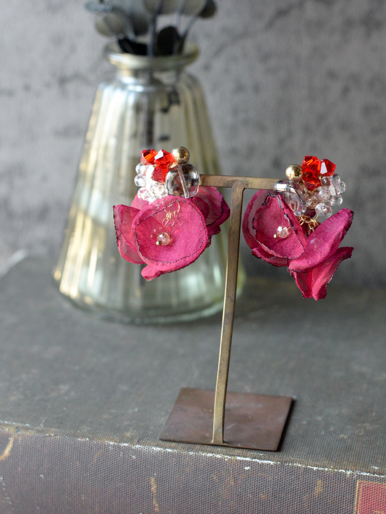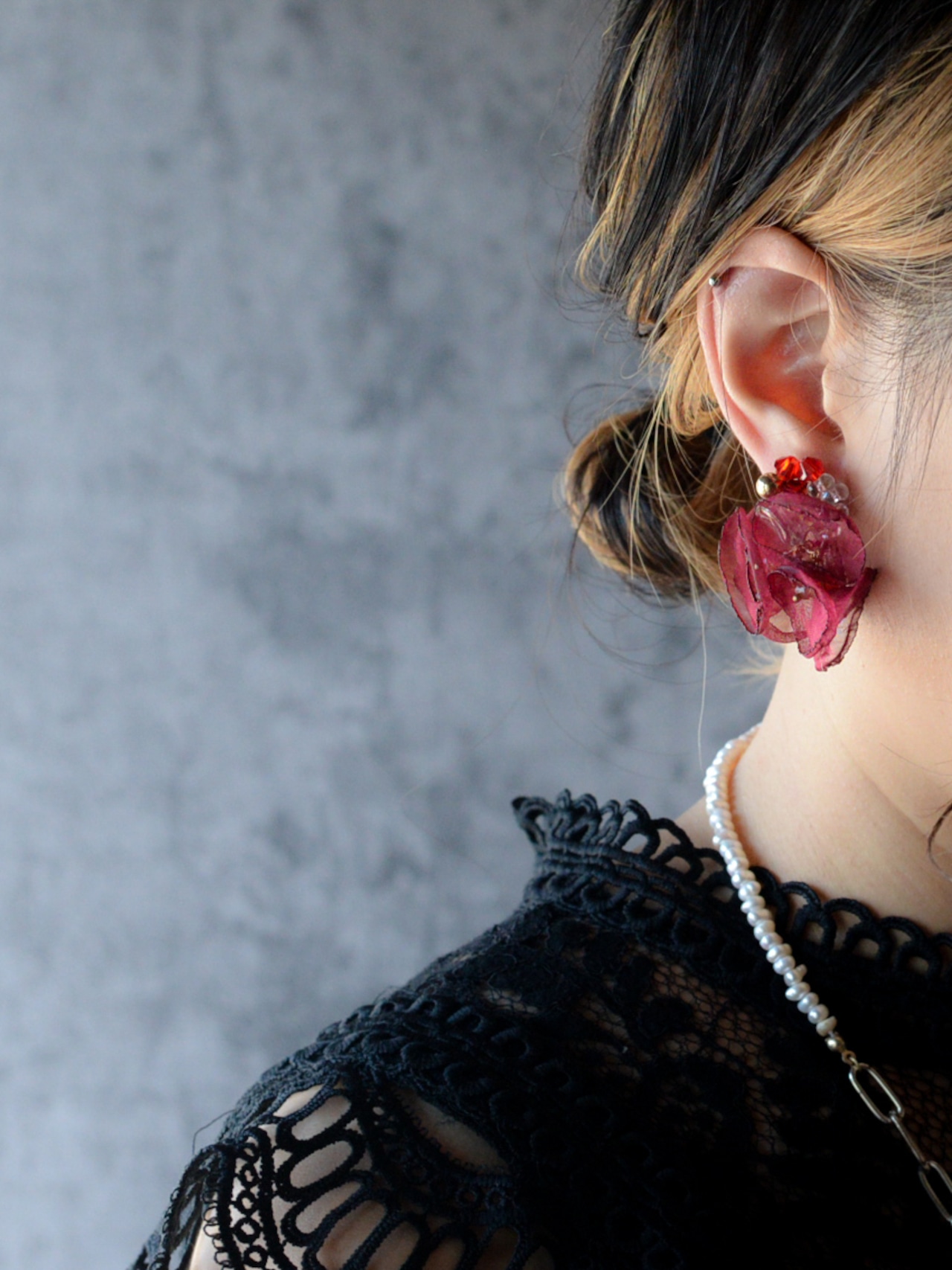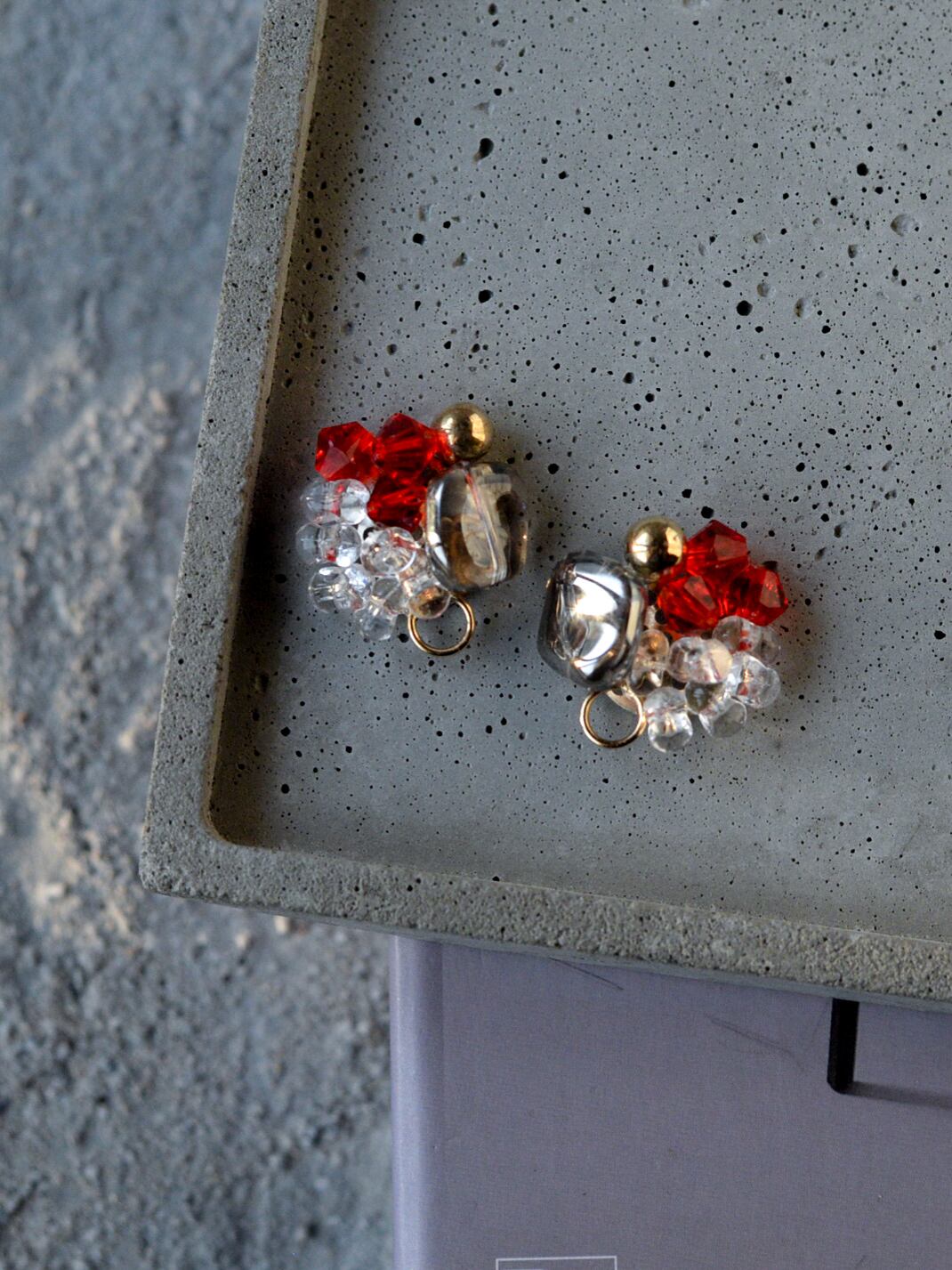 細かいカットが施されたガラスビーズは取り込んだ光を反射、屈折、分散させ光の粒を生み出し、お耳元を華やかに飾ります。