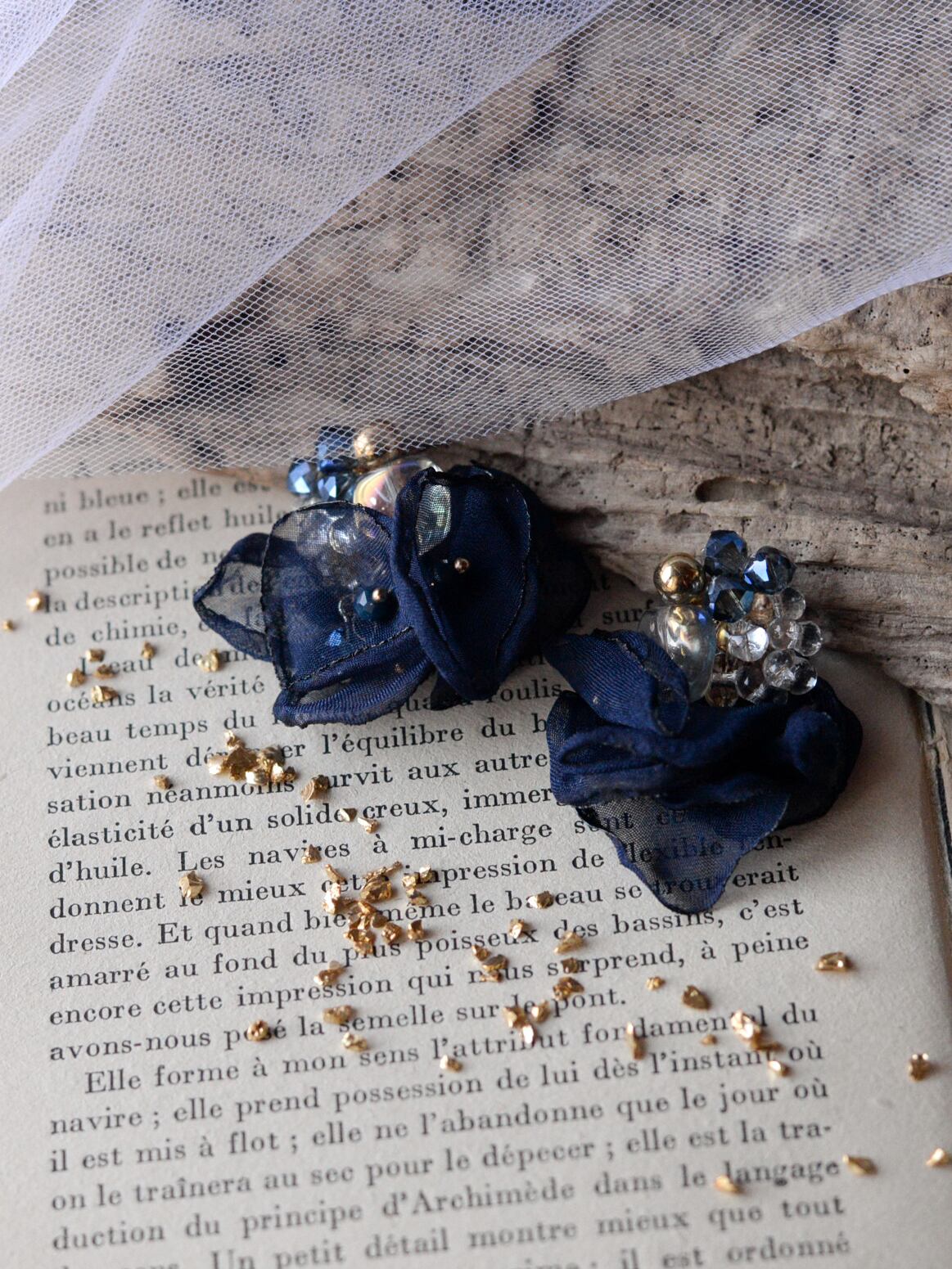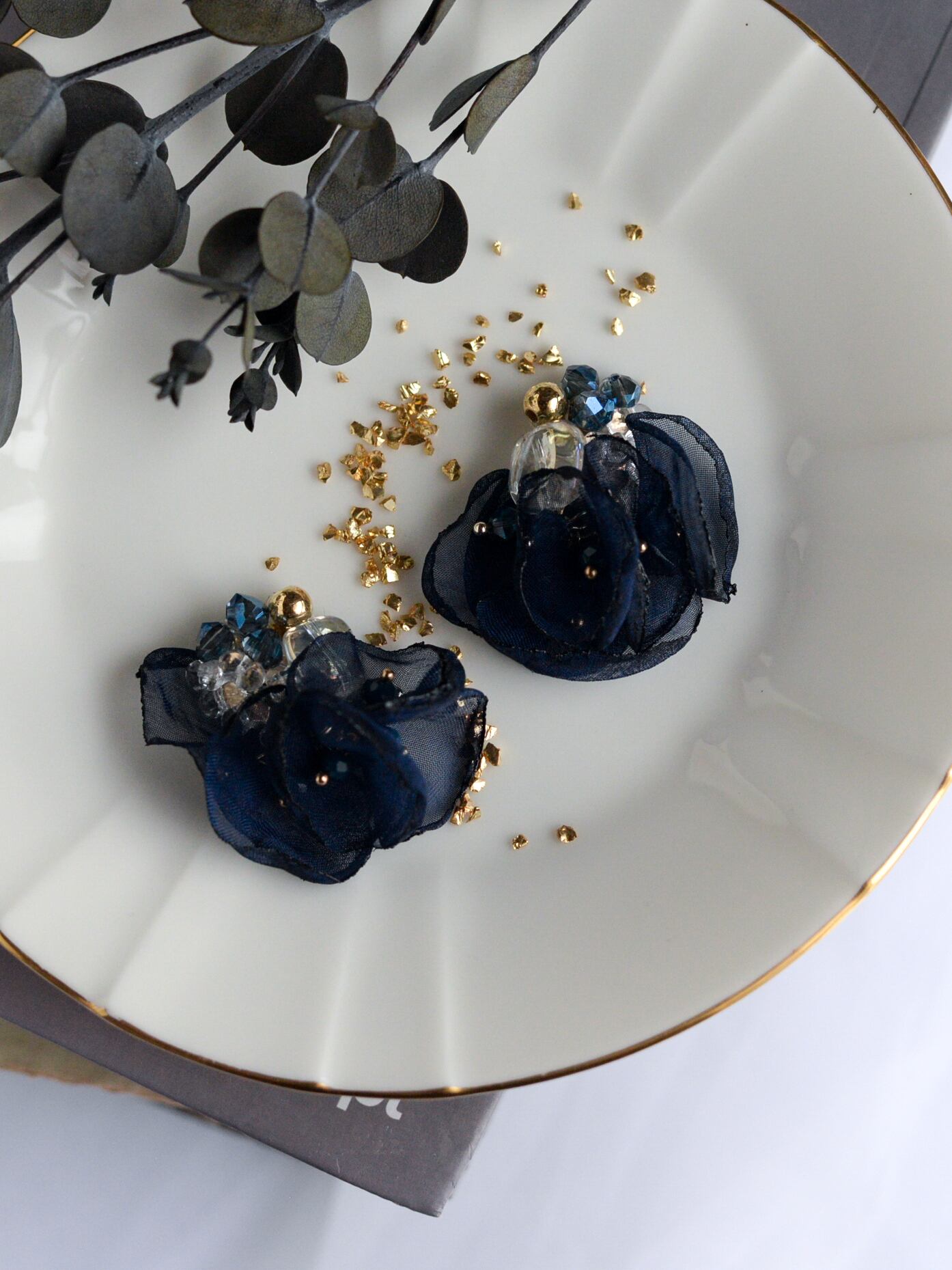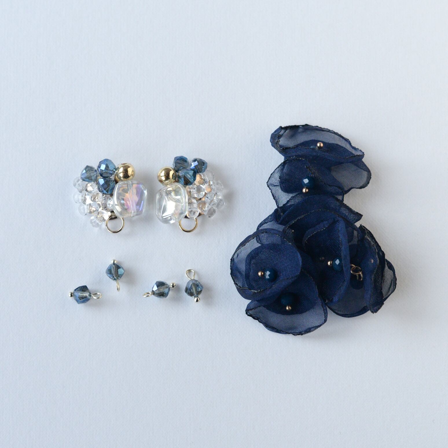 細かいカットが施されたガラスビーズは取り込んだ光を反射、屈折、分散させ光の粒を生み出し、お耳元を華やかに飾ります。