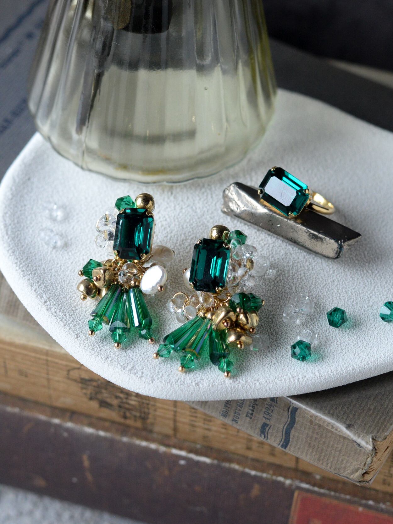 光の粒のようなガラスビーズをふんだんに使用した贅沢なアクセサリー。