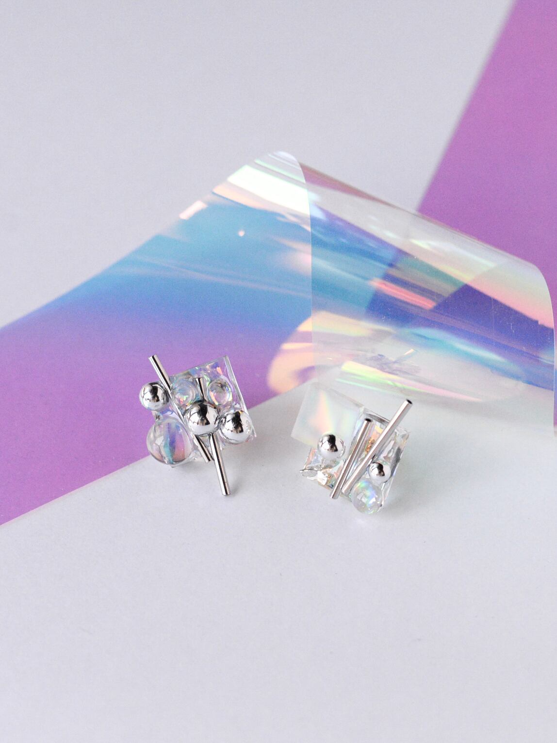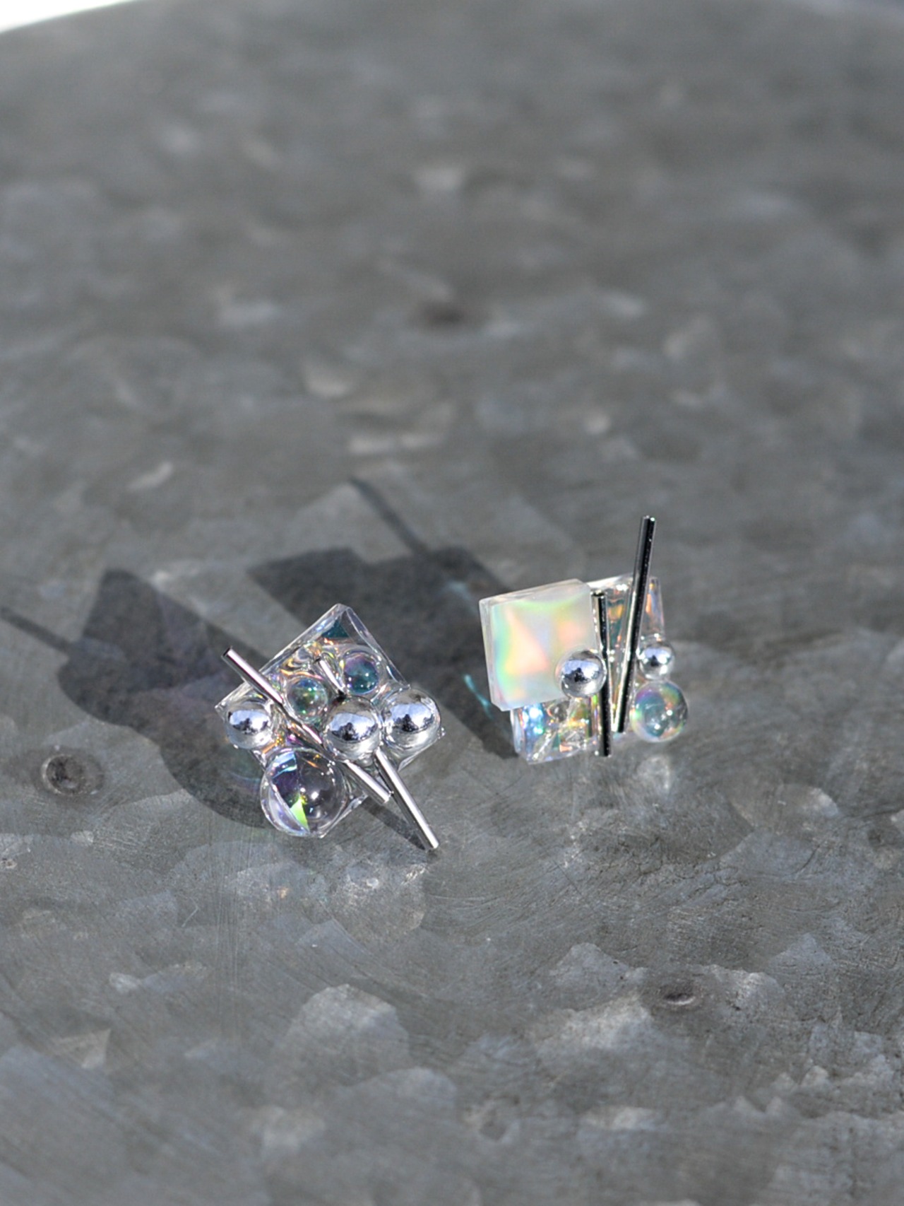 アシンメトリーデザインの片側には一回り小さいマットな正方形をON。